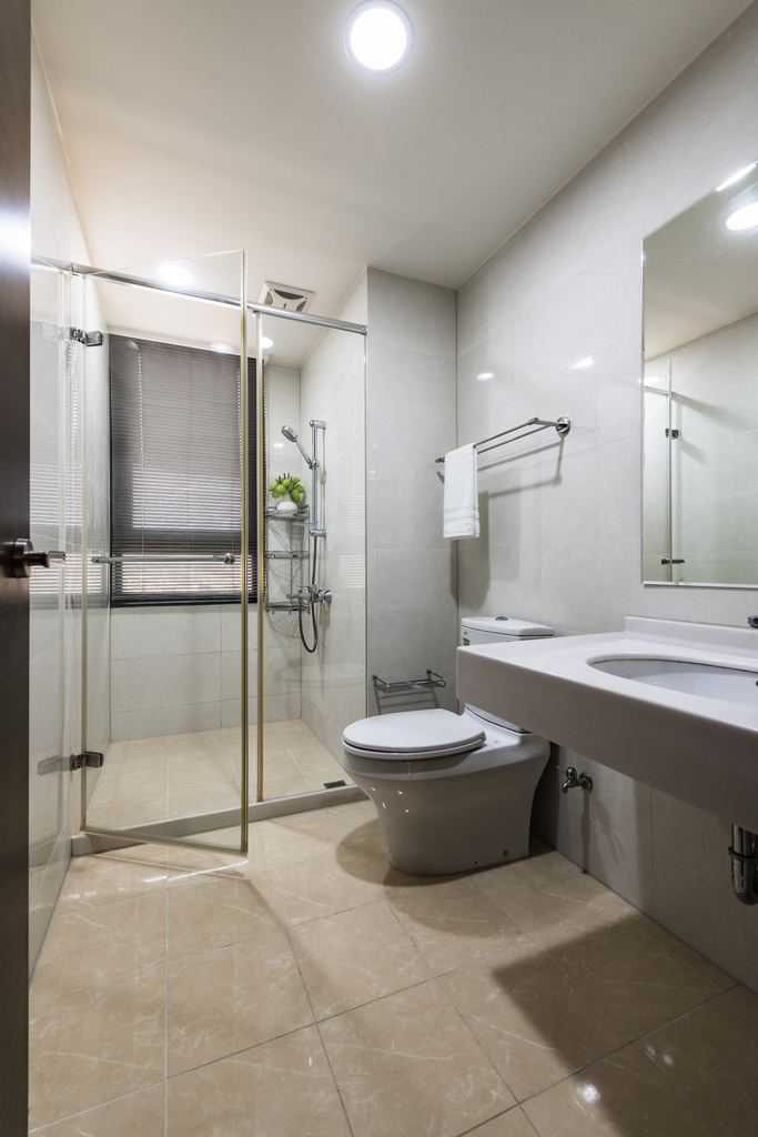 R10 止滑地磚與乾濕分離,兼顧長輩友善與日常清潔效率。